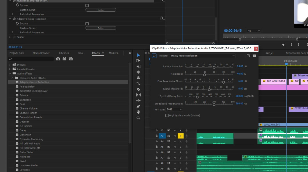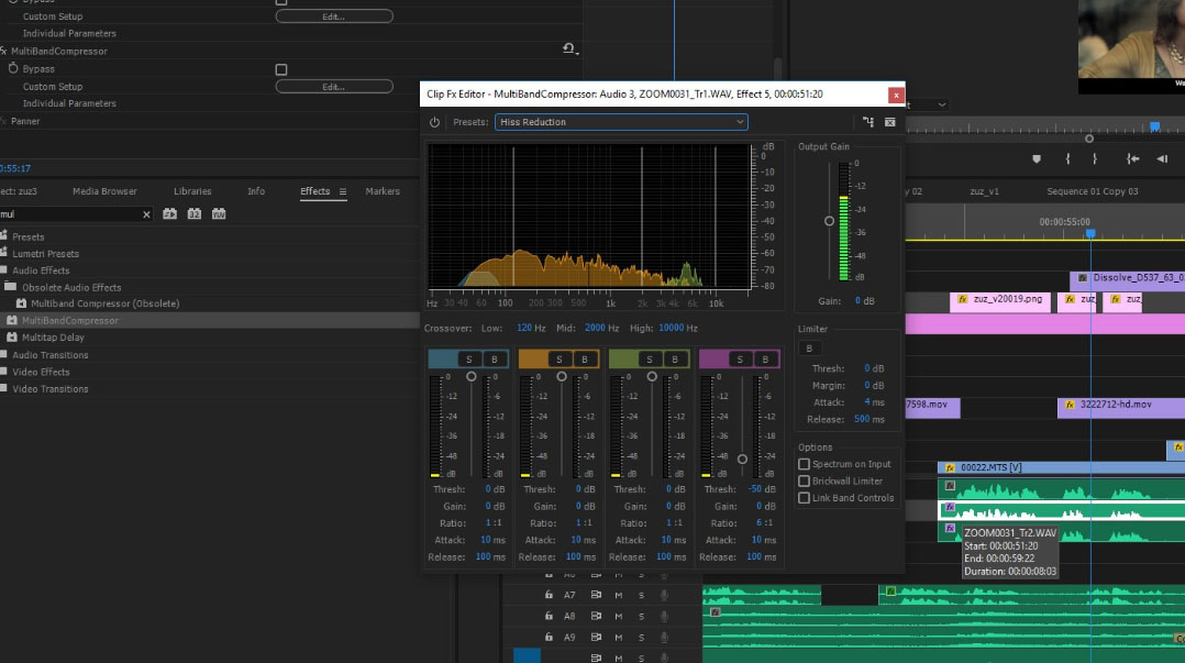 שני פילטרים עוזרים מאוד בניקוי 90 אחוז מהרעשים הנפוצים בסרטים. הראשון הוא ניקוי "ההיסס" (תדר גבוה) באמצעות MultiBandCompressor. עם פריסט מוכן לניקוי ההיסס..