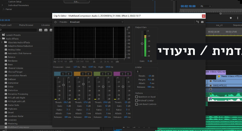 קומפרסור לדיאלוג הוא פילטר שמגביר את הצלילים החלשים של הקול האנושי ומגביר אותם ללא הגברה של הצלילים החזקים וכך יוצר דיאלוג ברור יותר. הנה צילום של פריסט מקובל המתאים להרבה סרטי תעודה של תלמידים.