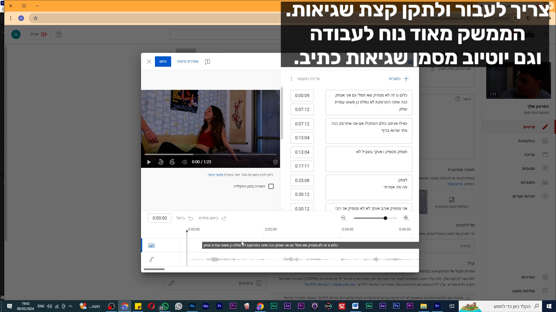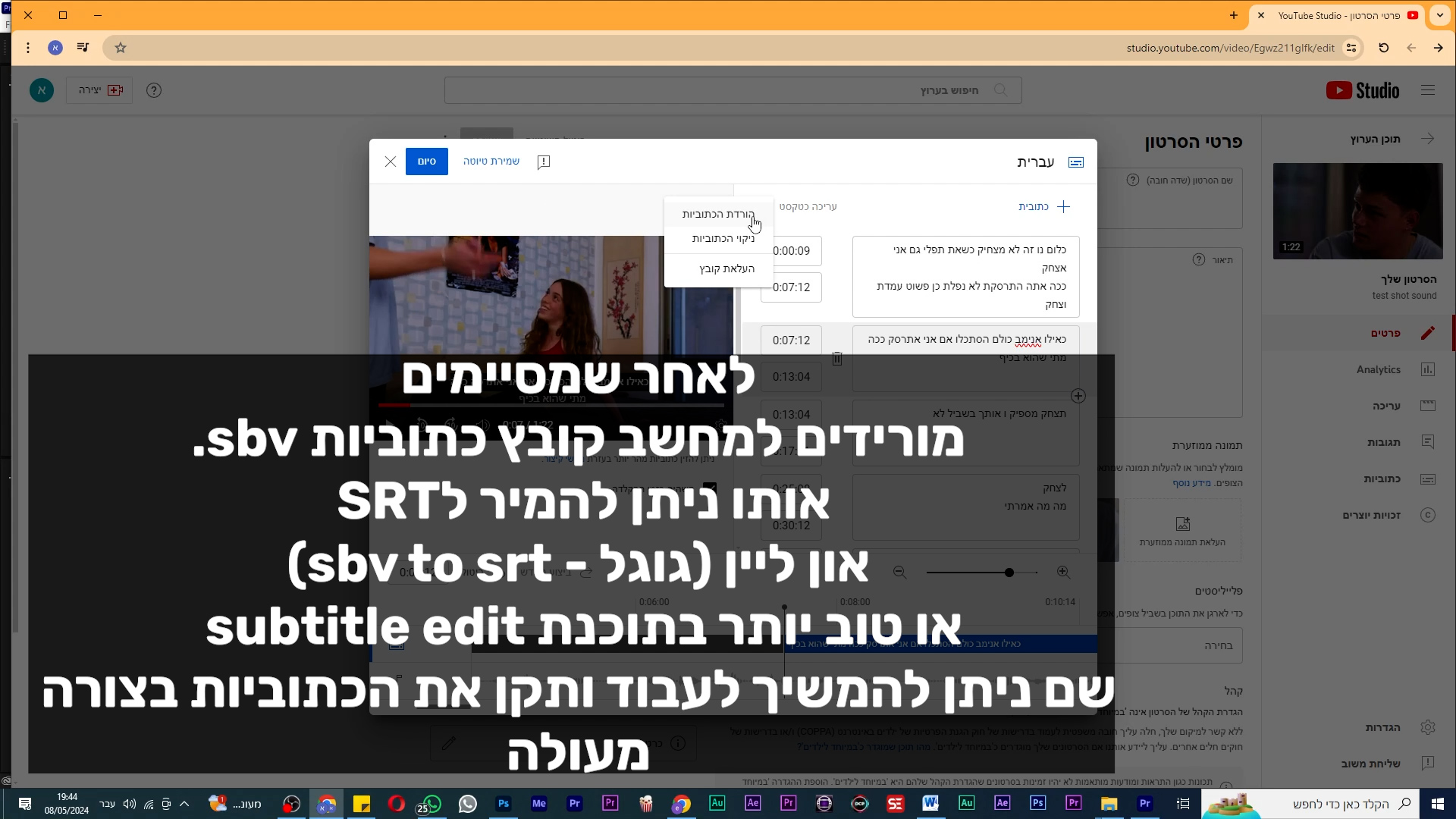 אפשר להשלים את העבודה באמצעות תוכנת subtitle edit. תוכנה חינמית ומעולה. ניתן ללמוד עליה כאן במדריכים.