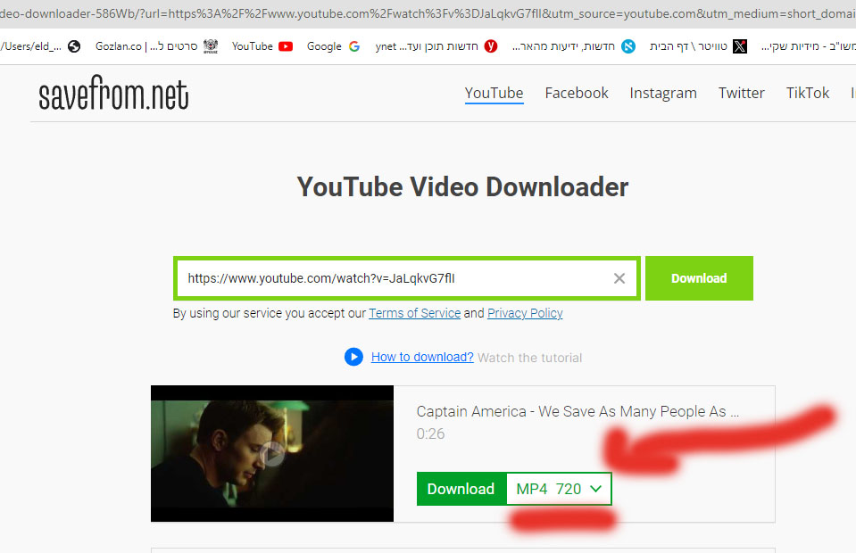 מגיעים לחלון הזה: בו בוחרים את הפורמט mp4 ולוחצים על דאונלואד.