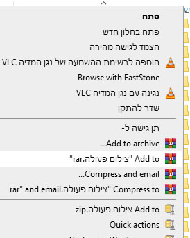 - חפש את האפשרות שמתייחסת לדחיסה. בדרך כלל היא תיקרא משהו כמו "Add to <פורמט_ארכיון>" (עם סיומת rar).