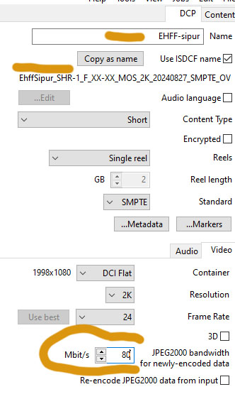 - בחרו את הגדרות ה-DCP שלכם (לדוגמה: קצב פריימים, יחס גובה-רוחב,כתוביות וכו'). על פי ההגדרות בסרטון ההדרכה.