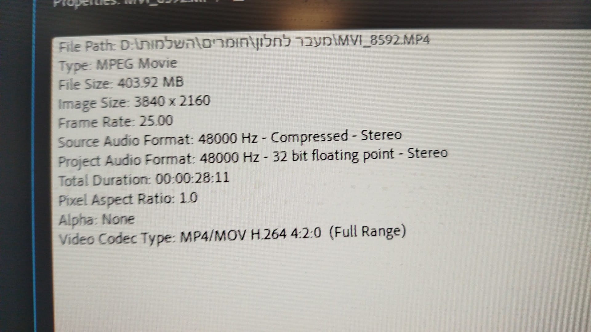 שימו לב שפה בדוגמא הרזולוציה היא 4K.... מומלץ לצלם ב2K (רזולוצייית HD - 1920X1080)