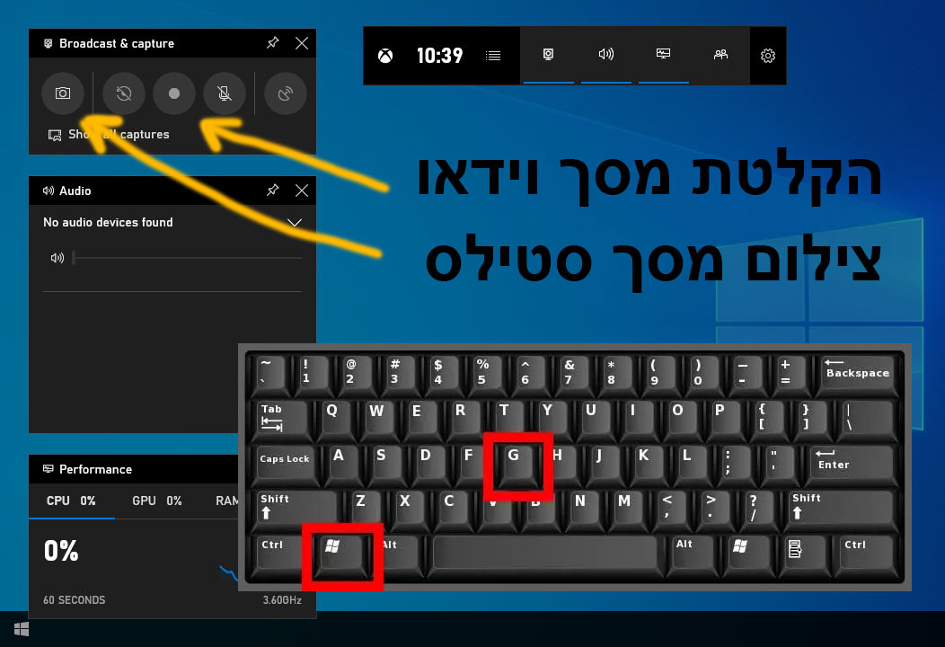- Windows 10: לחץ על מקש ה-Windows + G.
